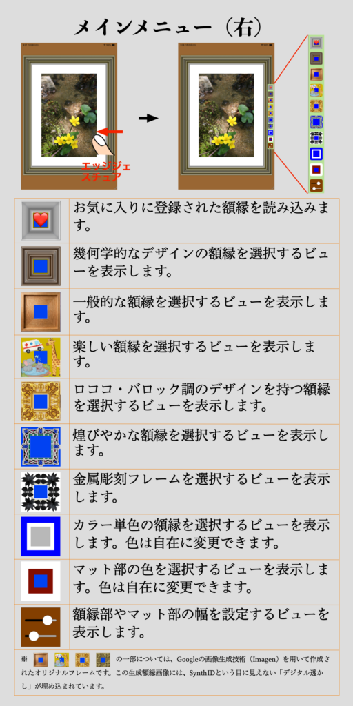 メインメニュー右 muusophia 2025年12月14日 メインメニュー左メインメニュー右枠の幅が自由な額縁枠が固定された額縁マット部の色額縁部やマット部の幅画角の編集画像として出力動画の操作と出力 Post Views: 97