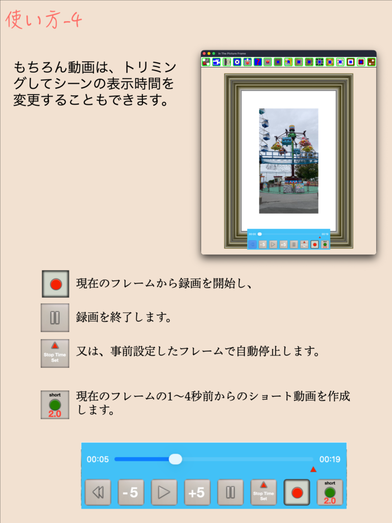加工: 画像範囲の切り取り(トリミング)、拡大・縮小、および動画再生の長さの切り取り(トリミング)