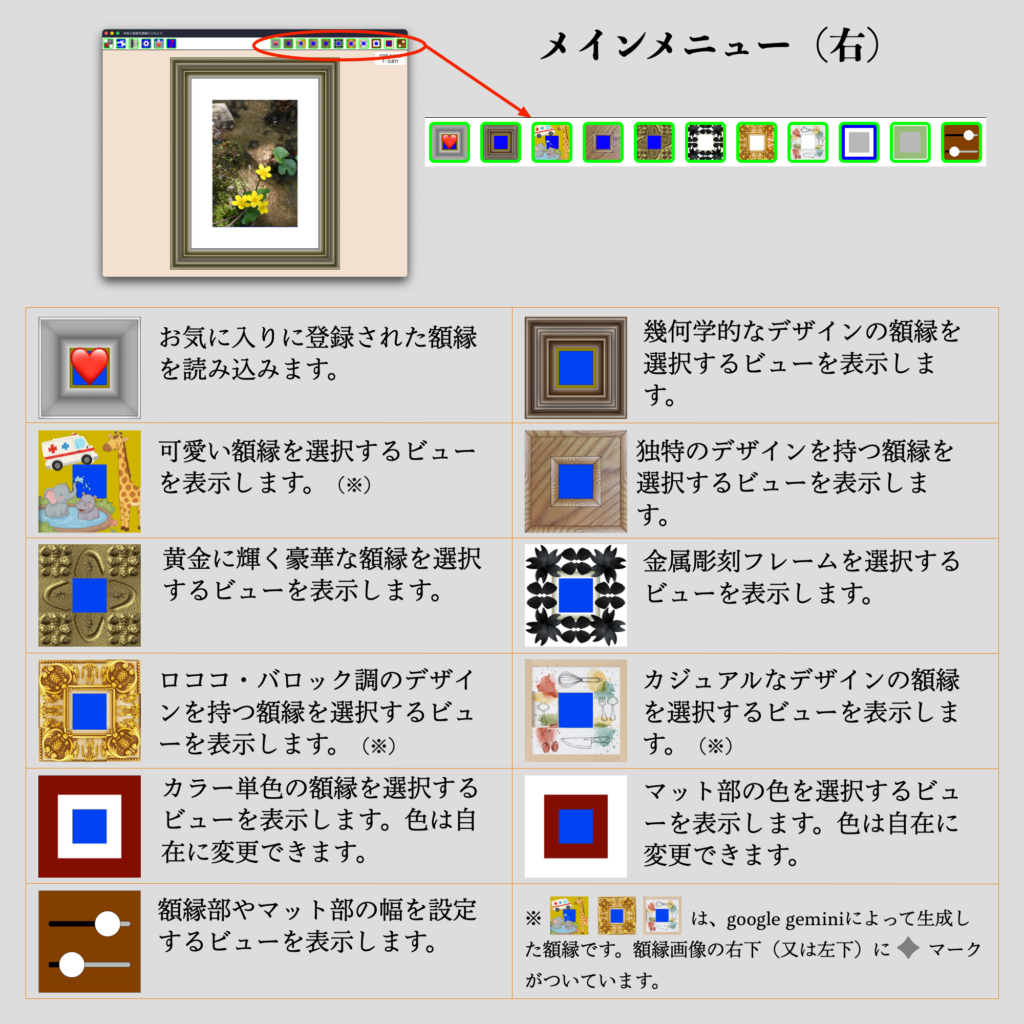 メインメニュー右 muusophia 2025年12月16日 メインメニュー左メインメニュー右枠の幅が自由な額縁枠が固定された額縁マット部の色額縁部やマット部の幅画角の編集画像として出力動画の操作と出力 Post Views: 39