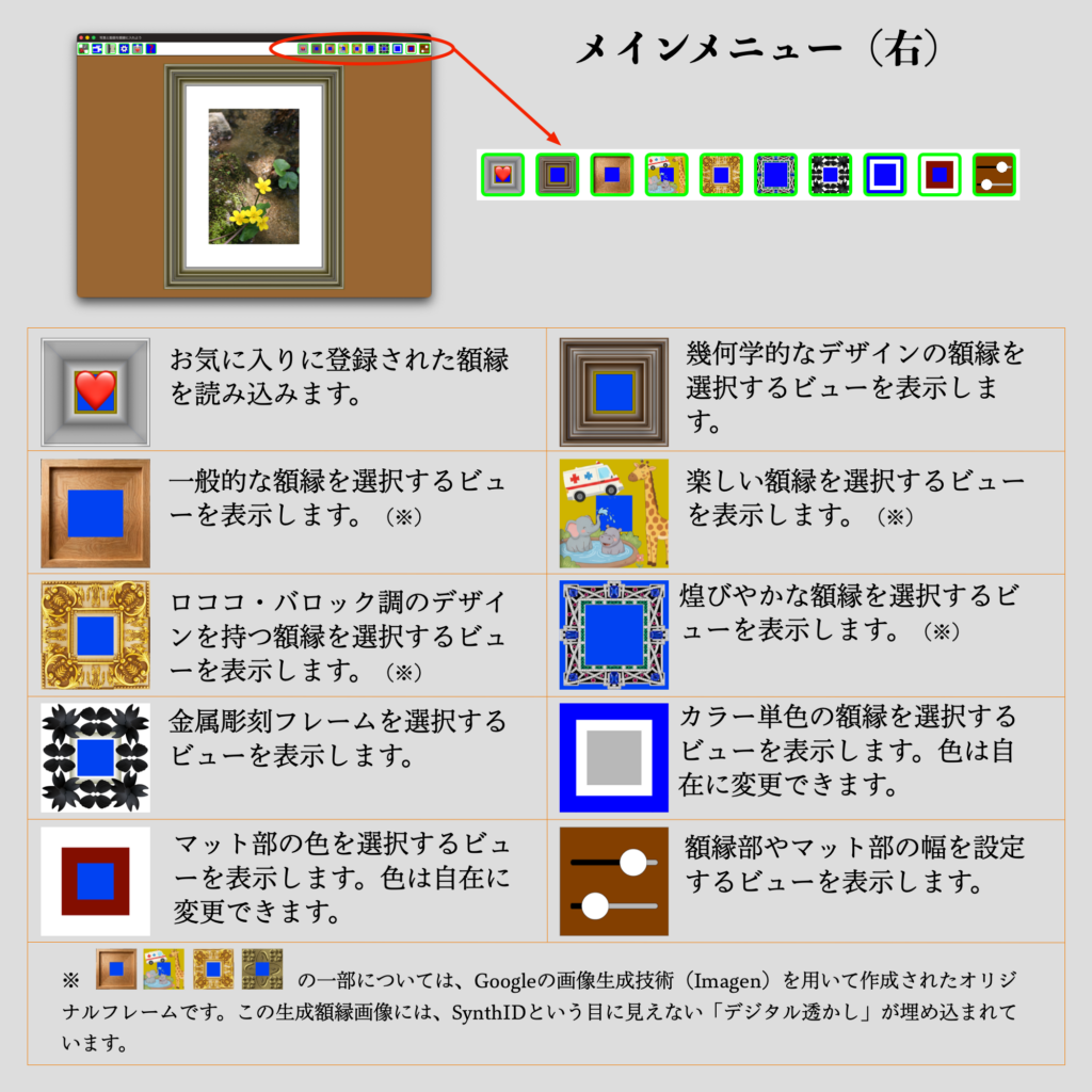 メインメニュー右 muusophia 2025年12月16日 メインメニュー左メインメニュー右枠の幅が自由な額縁枠が固定された額縁マット部の色額縁部やマット部の幅画角の編集画像として出力動画の操作と出力 Post Views: 58