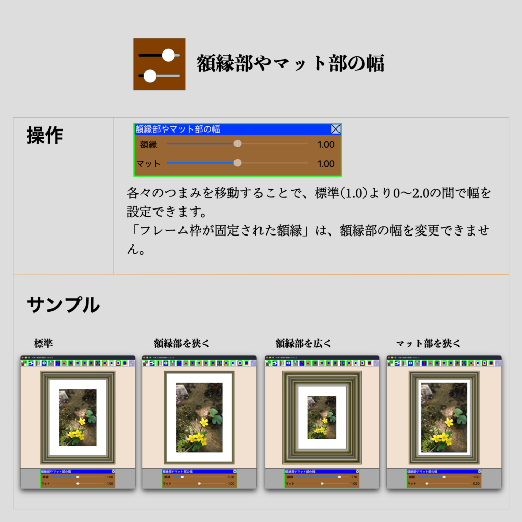 額縁部やマット部の幅 muusophia 2025年12月16日 メインメニュー左メインメニュー右枠の幅が自由な額縁枠が固定された額縁マット部の色額縁部やマット部の幅画角の編集画像として出力動画の操作と出力 Post Views: 49