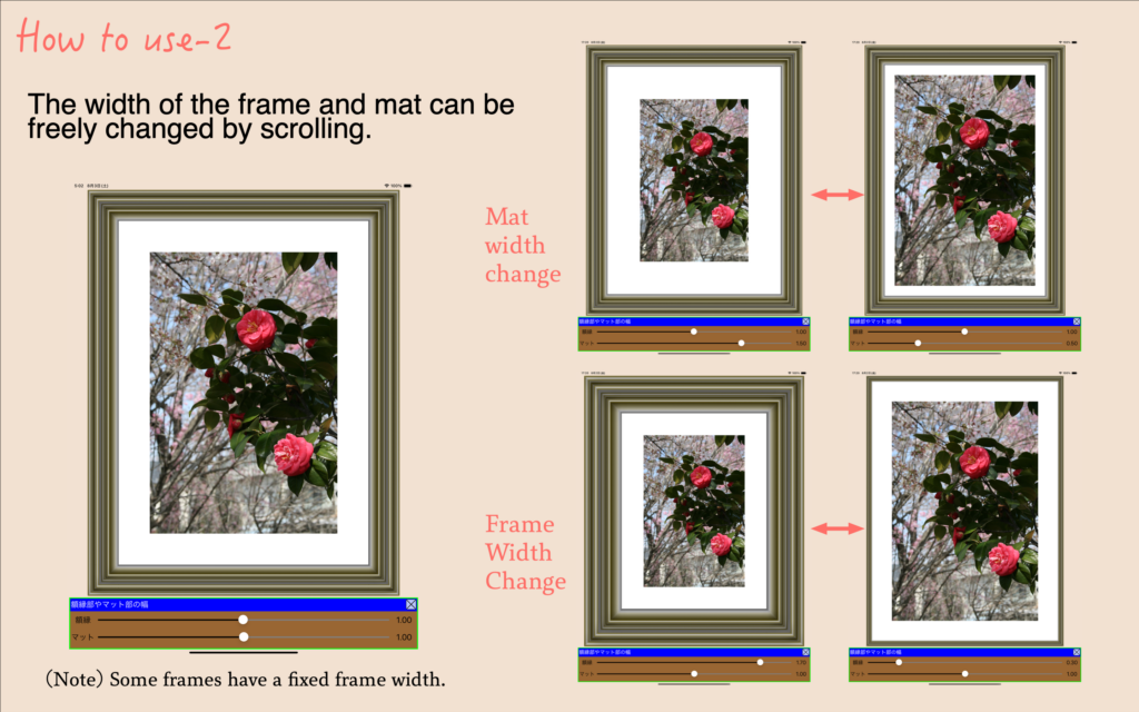A wide variety of frame designs are available, and the mat width is customizable. Depending on the frame type, the frame width can also be freely adjusted.